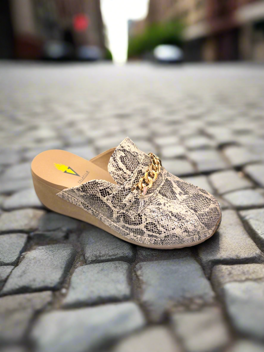 Brighton Faux Leather Mule w/Brac & Chain